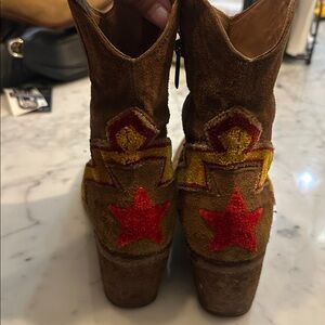 Stylish brown suede ankle boots with side zippers. Perfect for casual wear.