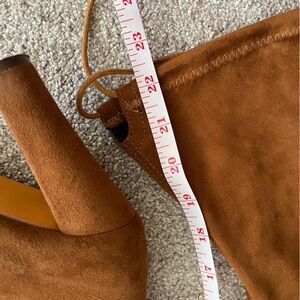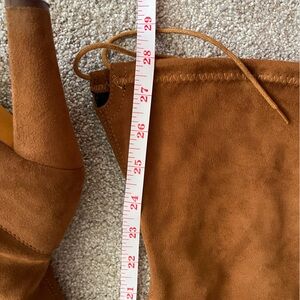 Stylish brown suede boots with a sleek design. Thigh high, 4inch heel, 22inch length top to bottom