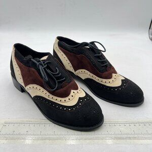 Brown Suede Patchwork Closed Toe Oxford Loafers Wingtip Self Tie Low Heel Pumps School Dress Party Daily Office Shoes