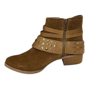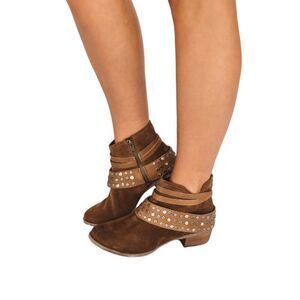 Brown Suede Leather Wide Metal Studded Wrap Boots by Naughty Monkey NEW