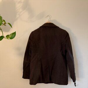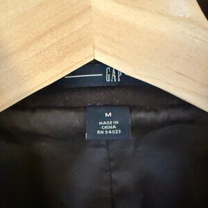 rown GAP jacket with a soft, sueded fabric and a tailored fit. Features a button front closure, wide collar, and front pockets for a classic look.