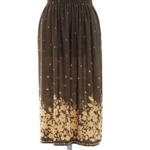 Brown and Tan Floral Border Print Maxi Dress - True to Size; 98% Polyester, 2% Spandex