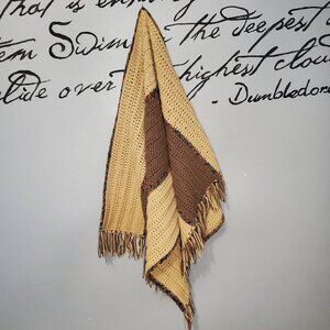 Brown & Tan Hand Knit Prayer Shawl - Lap Blanket