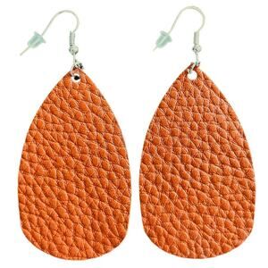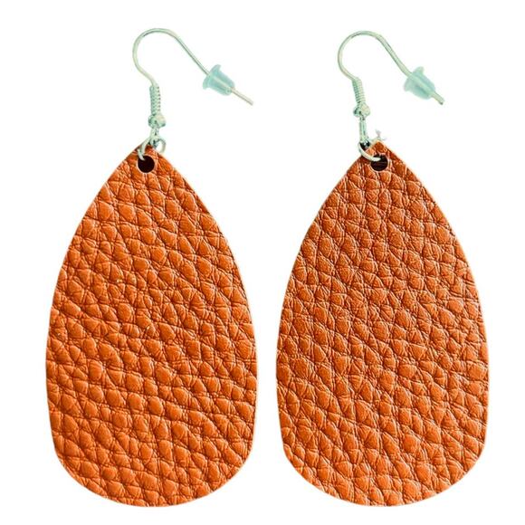 Brown Tan Textured Leather Teardrop Earrings