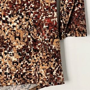 Brown Tan Wrap Top Size XL Abstract Artsy 3/4 Sleeve Dressbarn Blouse V-Neck LNC