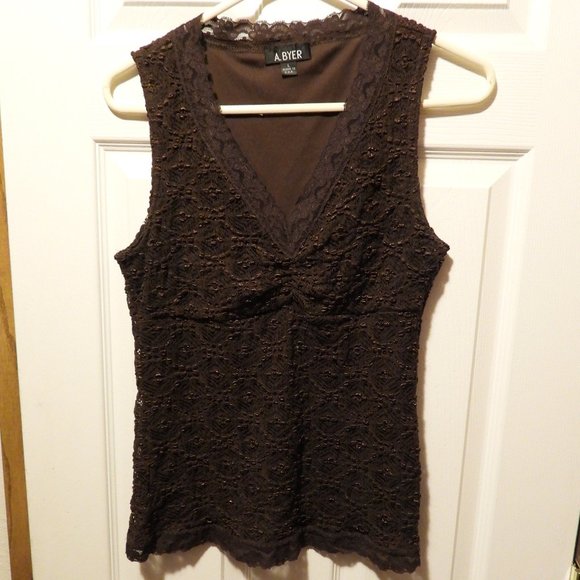 Chocolate brown tank top. Lace details