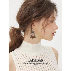 Brown Tassels Oval Shaped Enamal Dangle Statement Vintage Earring for Women