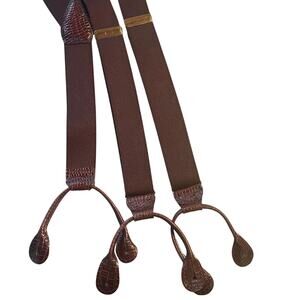 Elevate your style with these sophisticated brown leather strap suspenders. Perfect for adding a touch of elegance to any outfit.