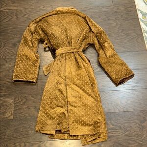 Cozy brown robe with a textured design. Features a tie belt for a snug fit.