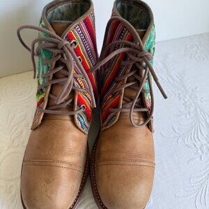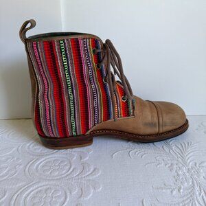 Brown Teysha Colorful Guatemalan Textile Embroidered Ankle Peace Boots Size 8