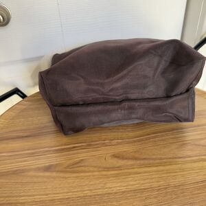 This brown toiletry bag is perfect for travel and everyday use. Its solid pattern and medium size make it a great accessory for both men and women.