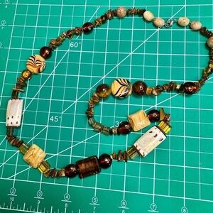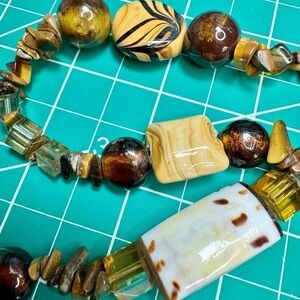 This beautiful brown toned necklace contains Tiger Eye, Oriental Agate, Agatized Coral, and brown glass beads.