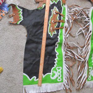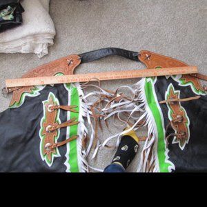 Brown Tooled Leather Cowboy Chaps Fringe Leather Chaps Unisex Chaps Black White Green Leather Rodeo Chaps