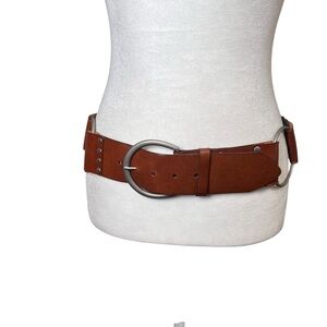 Unbranded brown genuine bonded leather wide statement belt waist belt with silver loops/rings