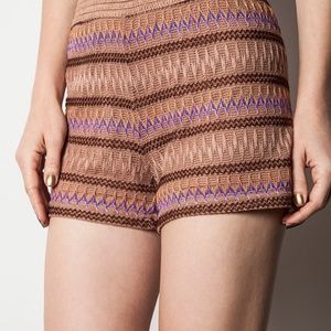 Brown Tribal Lace Knit Stretch Shorts Size S M L