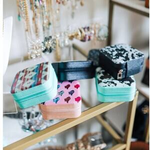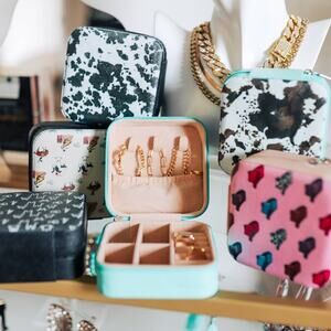 Square Jewelry Case These jewelry cases are so cute! They aren't too big, but also aren't too small! They are great for traveling with jewelry. They would be a college girls dream when coming home and needing to bring all the jewelry to accessorize her outfits! Keep your jewelry organized and all together in this case!