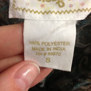 Extremely beautiful, feminine piece! The colors and style give it a very vintage feel. Flowy, "butterfly" sleeves, and soft, breathable fabric! Only been worn once! From Francesca's :)