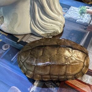 Turtle shell has been clear coated as it is a natural item and the sealant will help preserve the shell.