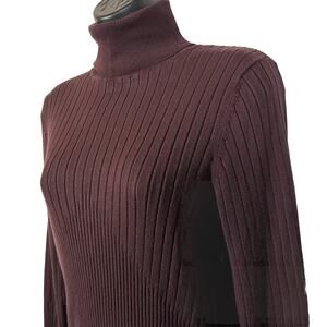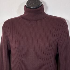 Brown Turtleneck Sweater Ribbed Bamboo Traders Women's Size Medium Retro Preppy