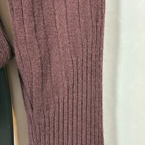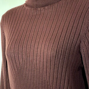 Solid warm mocha brown ribbed sweater, wider ribbing at top and shoulders, tighter, smaller ribbing on bottom and toward wrists