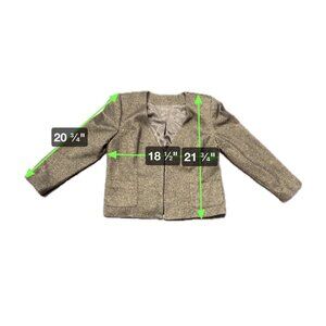 Brown tweed blazer featuring an open front and two front pockets. Designed with a comfortable lining for added warmth and style.