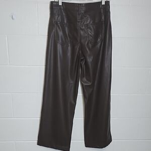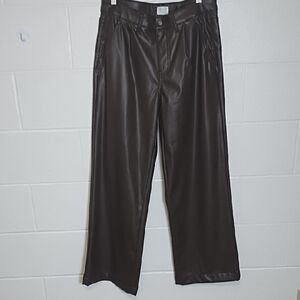 Brown Vegan Leasther Pants with High-Waisted Fit