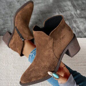 Brown Vegan suede Autumn Almond Toe bootie zipper faux suede true to size almond shaped toe lovely stitched detail along the sides towards the back Ships In 6-9 Days holiday christmas summer Spring Boho picnic hippie 60’s 70’ festival soft-girl 90s y2k butterfly blouse holiday party dressing chunky crochet maximalist core beachy Resort wedding guest bridesmaid date night Sexy modest contemporary layer classic trendy layered office preppy cruise Bohemian vintage flirty thanksgiving chic maxi coverup beach tropical vacation coachella dress skirt floral midi western classy winter fall birthday gift girly minimalist 00s engagement bachelorette travel aesthetic vibe retro casual dressy valentines Light baddie color-block tiktok business professional workplace wear pants blazer Christmas prom work formal gown ball pastel goth prairie instabaddiecore cottagecore