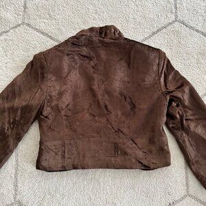 Brown Velvet Cropped Blazer Jacket Single Button Closure Sz 12