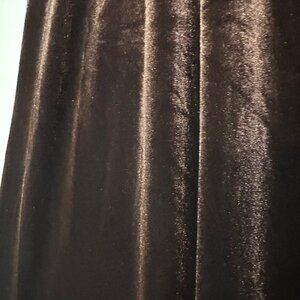 Paper tag and made in The USA lead me to believe that this is vintage. This elegant maxi skirt made of luxurious velvet offers a sophisticated look. Its soft texture and rich brown color enhance any outfit effortlessly.