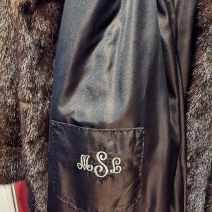 This is a vintage mink coat measuring 43' in length. It is designed by a well-known Detroit furrier. The coat has a stand-up collar when buttoned at the top. When unbuttoned it will show a beautiful scarf well. The hem of the coat is curved at the opening. It was purchased from a vintage resale shop in very good condition. I show the monogram inside to reveal this was done twice by previous owners.