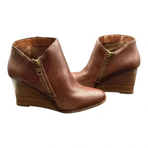 Stylish and comfortable brown wedge ankle boots with a side zipper. Perfect for any occasion. New in box. Size 8.5