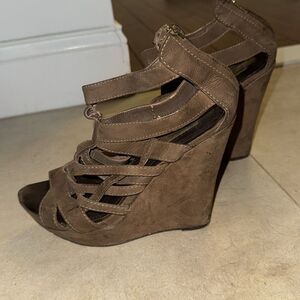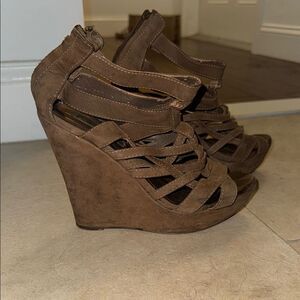 Brown Wedge Sandals Suede 8 Women’s Heels - Great Condition