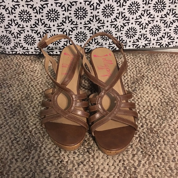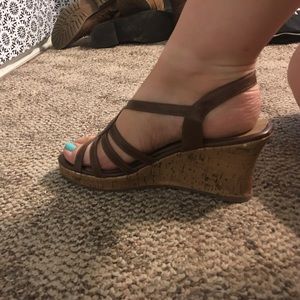 Adorable, comfortable brown wedges. Perfect for a night out or even work. They are not high and very easy to walk in.