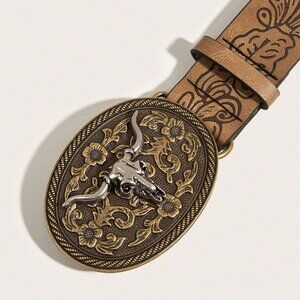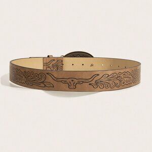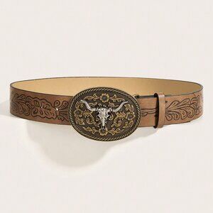 Add a touch of Western flair to everyday outfits with this brown metal belt, designed for casual wear. A bold buckle anchors the piece, while an embossed print adds texture and visual interest. The sturdy metal construction ensures durability, and the versatile brown hue pairs easily with denim, skirts or layered tops, making it a practical accessory for a relaxed, on‑the‑go look.