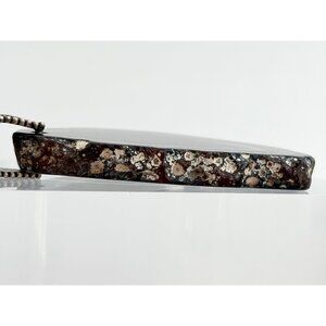 Brown & white geode agate stone pendant. The bail is silver and textured. The stone is sliced fairly thin with gorgeous rough textures along the sides. Such a pretty piece in wonderful shape.