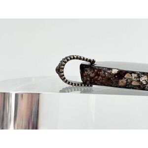 Brown & White Banded Sliced Agate Geode Crystal Large Silver T Vintage Pendant