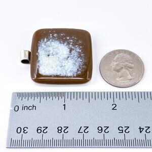 Brown White Fused Glass Pendant | Large Sterling Silver Bail Necklace Charm