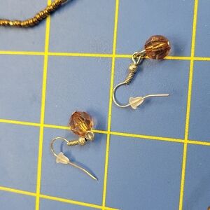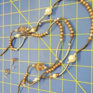 Brown White Pearl Beaded Silver Accented 24" Short Strand of 3 Strands & Earring