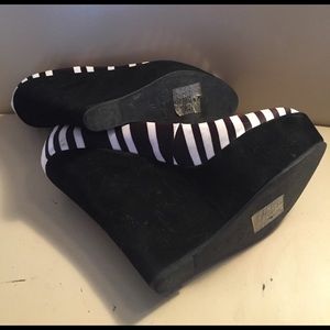 Brown and white striped Aldo wedges size 37. Good used condition, minor dirt marks can be cleaned off. Fabric outer. Cute and fun for a night out! Please see pictures for details.