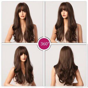Brown Wigs 24" Long Synthetic Wig Natural
