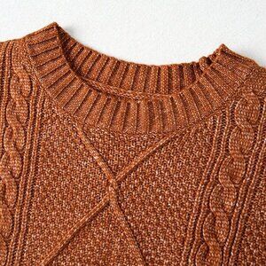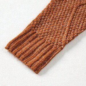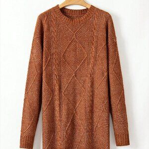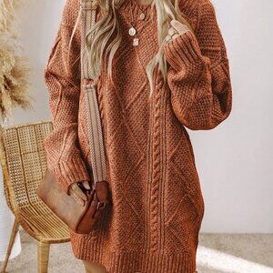 Elevate your everyday style with this brown casual dress, featuring a textured knit fabric for a unique touch. The oversized loose fit design provides a comfortable and relaxed silhouette, perfect for daily wear. With a round neckline and long sleeves, this short-length dress is ideal for a laid-back look.