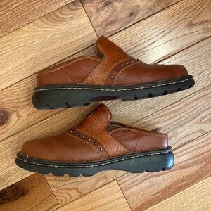 Really cute brown loafers / mules by Double-H Boots. Sort of a more western doc marten look. In great condition. Says size 8/39 on there but I think these would be best for a size 7-7.5. They are just a little small on me with socks, and I am a 7.5-8. Very comfortable padded insoles.