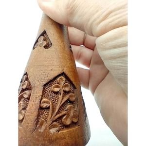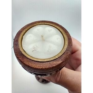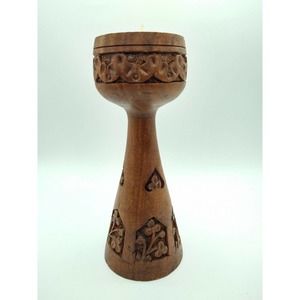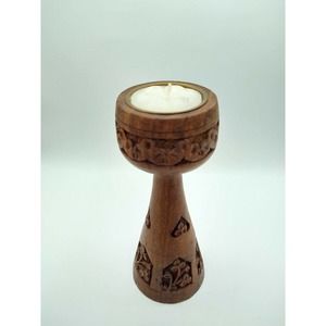 Brown Wooden Floral Carved Tea Light Candle Holder Made in India. Signed on bottom.