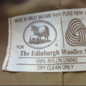 Brown Wool Jacket by Edinburgh Woolen Mill. No size label. Maybe Medium. Proper British jacket. I found it in the UK at a charity shop. **Often on the wool clothing I get in the UK is the moth holes. This jacket has one very small hole in one arm.