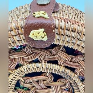 This crossbody bag features a stunning circular woven design with a rich brown leather strap, perfect for adding a touch of elegance to any outfit. The intricate open-work pattern on the front showcases exceptional craftsmanship, making it a standout accessory. Ideal for those who appreciate unique and artisanal designs.