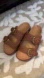 FINAL SALE. Stylish brown woven slide sandals featuring gold buckles. Perfect for casual wear. Brand new without tag. No box. Size 5.5. Adjustable straps.
