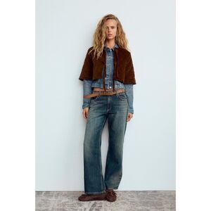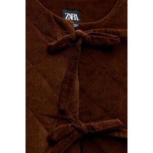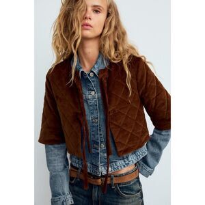 Brown Zara Round Neck Quilted Tie-Front Cropped Short Sleeve Jacket (NWOT)