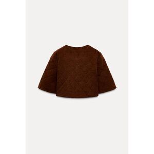 Brown Zara Round Neck Quilted Tie-Front Cropped Short Sleeve Jacket (NWOT)