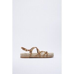 Brown Zara Suede Stud Embellished Straps Gladiator Espadrille Sandals (NWT)
