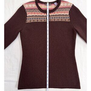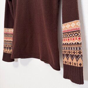 Brown and Beige Fair Isle 100% Cashmere Henley Sweater Size Small
